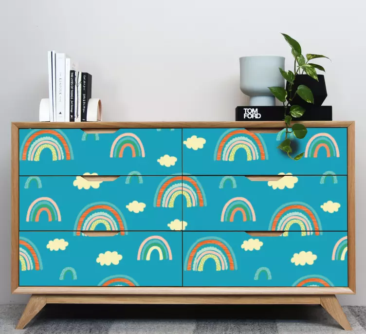 我们的家具贴纸彩色彩虹图案充满了俏皮和异想天开的设计,展现了五彩斑斓的彩虹与梦幻般的云朵图案。无论是儿童房间还是家庭休息区,这款独特的家具贴纸都能为您的空间增添无限生机和乐趣。它不仅是一种装饰,更是让每一个角落都充满了温馨与活力的艺术作品!