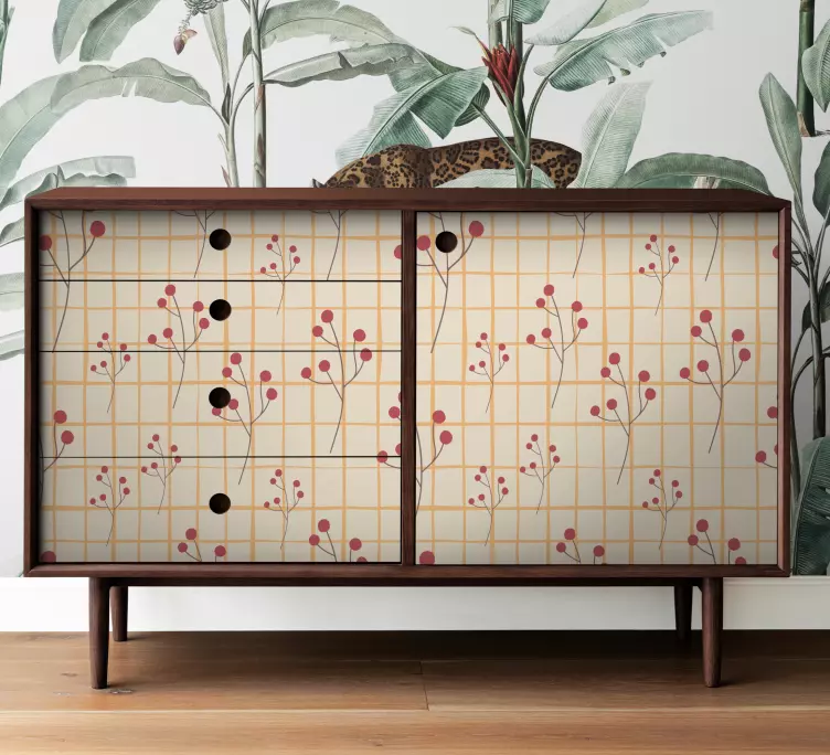 欢迎您探索我们的家具贴纸花卉图案储物箱!这个设计独特的产品以丰富多彩的花卉图案为特色,完美地结合了方格和网格的元素。每一个细节都展现了浆果般的生动色彩,为您的家具和抽屉增添了一抹自然的气息。无论是摆放在家中的哪个角落,这款储物箱都能带来视觉上的享受和实用的存储空间。