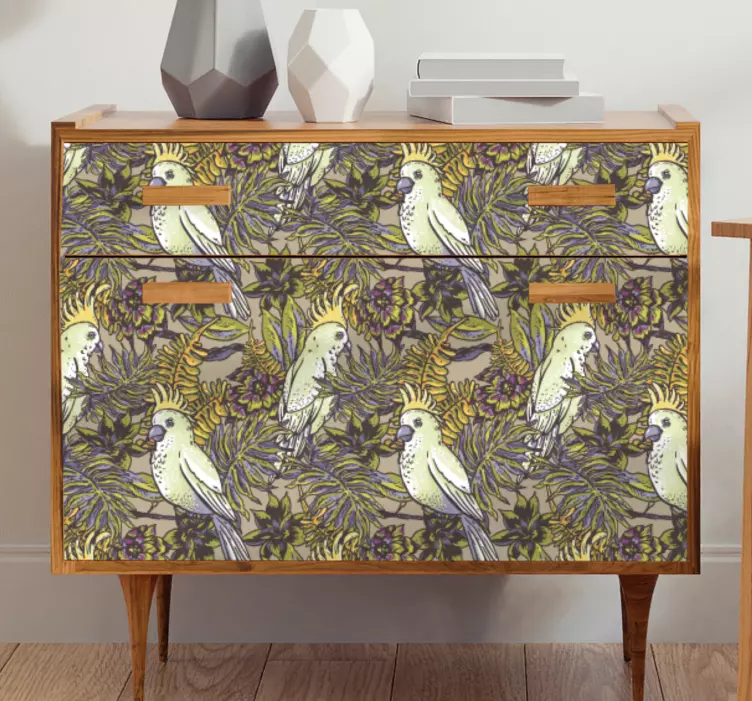 家具贴纸灵动鸟类灵感设计为您的家居带来了自然的美感。这种设计灵感来源于热带地区,展现了色彩斑斓的鹦鹉、繁茂的树叶和绚丽的花朵,仿佛将生机盎然的自然植物群融入您的家具中。每一片贴纸都如同艺术品,将鸟类的灵动与自然的和谐完美结合,让您的空间焕发出活力与灵动!