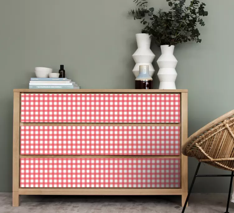 这个设计采用了红白相间的活泼方格图案,营造出一种生动而温馨的氛围。非常适合更新各种表面,为空间增添了一丝魅力与温暖,完美提升了舒适的居住环境。
