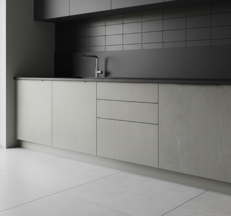 现代厨房环境展示了简约设计的光滑橱柜,搭配有纹理的背板。这个空间展现了干净的线条和实用的布局,突显了当代生活的本质。非常适合那些希望以风格和实用性提升家居的人。