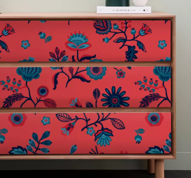 这款生动的家具贴纸以精美的花卉设计为特色,展现出丰富多彩的花朵图案,尤其是红色的花朵,仿佛将民间艺术的灵感注入到每一个抽屉和家具表面。其抛光效果让设计更显生动,仿佛一幅绚丽的画卷在您的家中绽放。