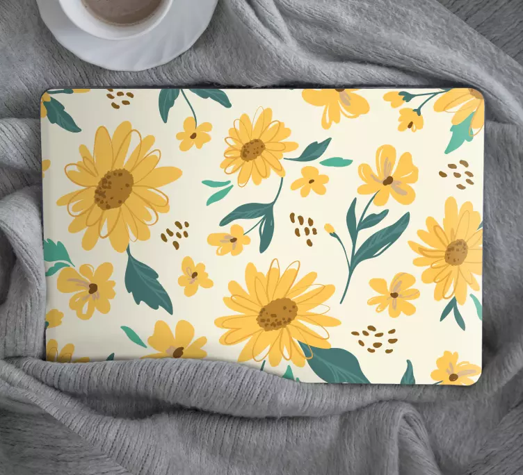 欢迎来到我们的笔记本电脑皮肤欢快花卉图案世界!这款设计灵感来源于自然,展现出向日葵与各种花朵的美丽插图,整个图案充满了黄色的生机与活力,给您的笔记本电脑增添了一抹亮丽的色彩。这款产品不仅是装饰,更是对生活热爱的表达!