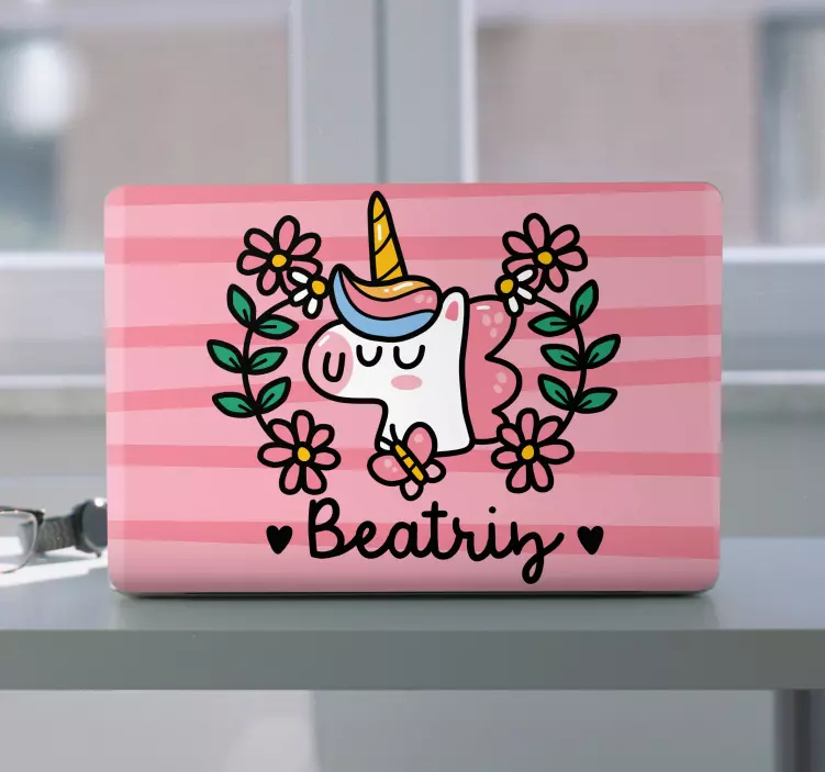 笔记本电脑皮肤独角兽花卉设计