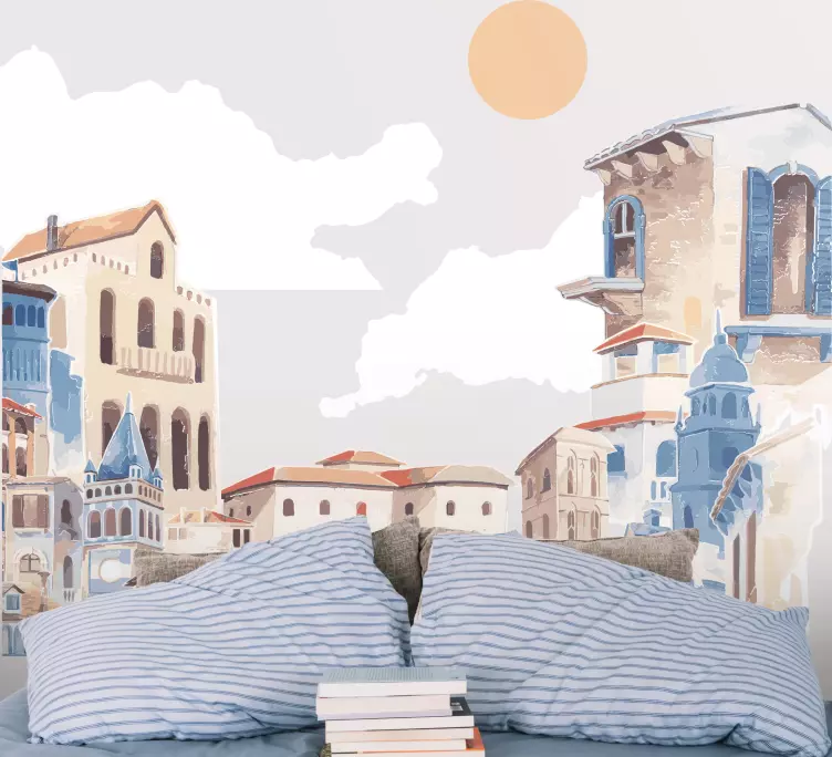 这款独特的贴纸展现迷人的城市风景,描绘了一个生动的场景,包含了迷人的镇与村庄,以及各式各样的建筑物。在这幅水彩绘画中,您能感受到城市的脉动,阳光洒在蓝色的建筑物上,温暖的色调让整个城市景观充满活力。无论是居家还是办公空间,这款设计都将为您带来无与伦比的视觉享受!