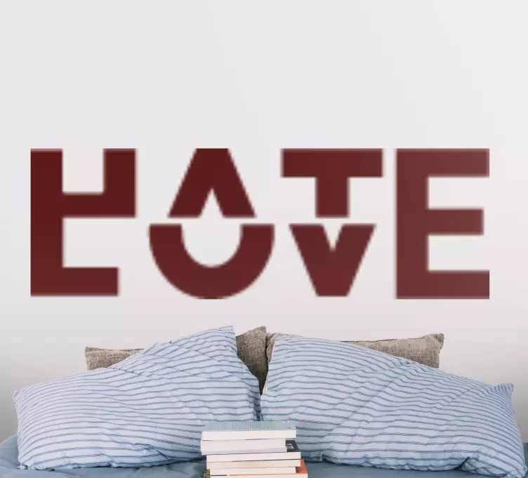 该设计在‘HATE’和‘LOVE’这两个词之间形成了鲜明的对比。俏皮的排版使用传达了一个引人深思的信息,非常适合现代室内环境。其单色配色方案增加了多样性,允许根据不同的装饰风格进行定制。