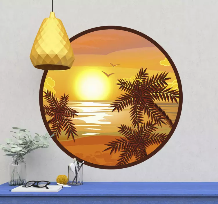 自然贴纸宁静日落风景是一款令人心旷神怡的装饰品,设计灵感来源于热带海滩的壮丽景色。产品采用圆形的设计,展现了棕榈树在夕阳下的迷人剪影,海洋的波涛轻轻拍打着沙滩,营造出一种安详的氛围。每一次凝视,都仿佛置身于那个宁静的瞬间,让您在家中也能感受到大自然的魅力。