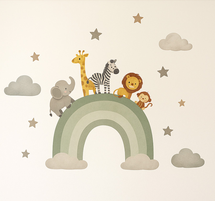 在我们的在线商店购买此Nursery room wall decal,您将获得专为特定表面设计的高品质贴纸 孩子们的墙贴纸 动物酷炫彩虹冒险。我们的产品不仅易于安装,还提供了个性化定制的选项,确保每一位顾客都能找到适合自己家居的尺寸。