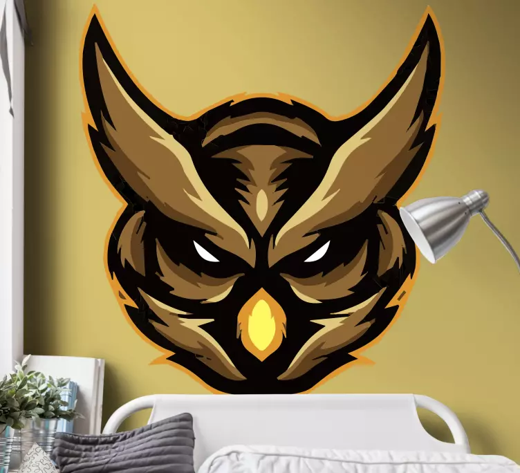 參考:: A51535该图像展示了一只凶猛的猫头鹰面孔,具有鲜明的眼睛和细致的羽毛。这个设计体现了力量和智慧,使其成为一个引人注目的视觉元素,吸引注意力并提升任何空间的美感。
