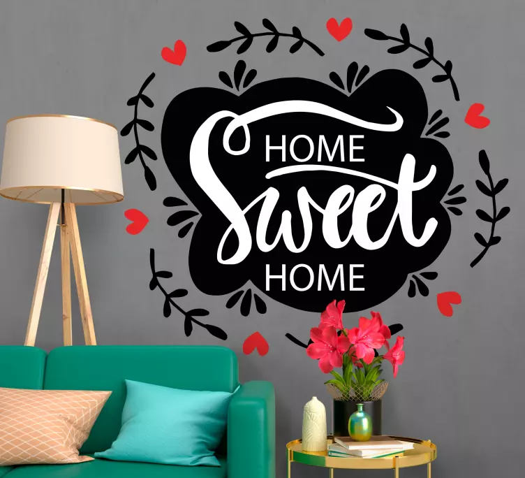 參考:: A48557这句‘Home Sweet Home’以优雅的排版美丽呈现,周围环绕着迷人的藤蔓和心形图案。这个表达传达了温暖和舒适,非常适合在任何居住空间中营造出热情友好的氛围。