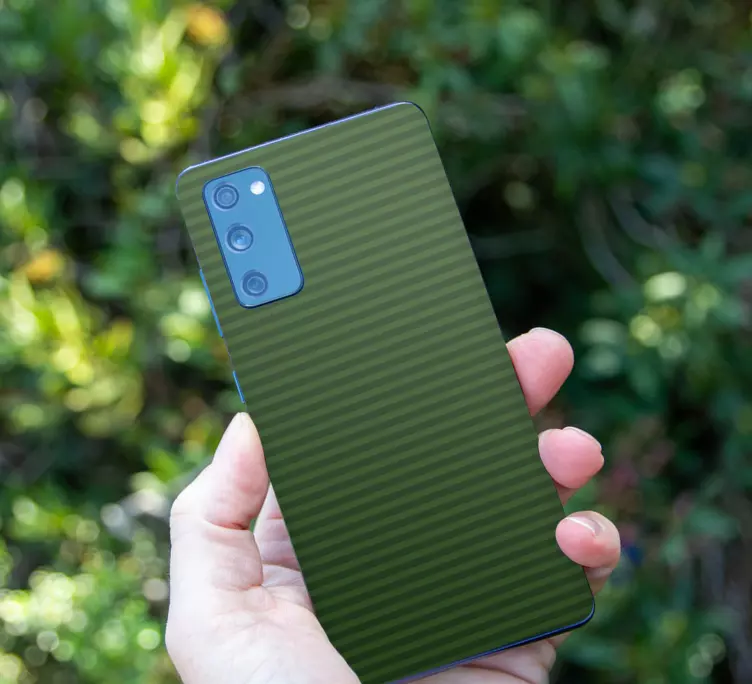 欢迎来到我们独特的贴纸,专为三星设备设计,展现出迷人的绿色条纹包裹风格。此产品的设计灵感来自于现代与简约的结合,呈现出深色背景与绿色条纹的完美搭配,给您的手机增添一份时尚与个性。