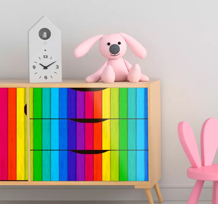 这款动物贴画生动的竖线设计灵感源于自然的木头和木纹效果,展现出如同木板般的质感。它结合了多种颜色的彩虹条纹,营造出充满活力和抽象的艺术氛围,仿佛将大自然的神秘与活力融入您的家居之中。无论是用于家具还是墙面装饰,它都能为您的空间增添独特的魅力。