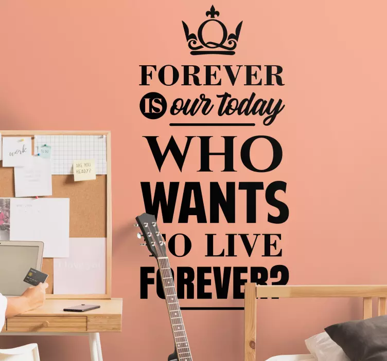 应用文字贴纸“谁想永生”非常简单,只需确保所选表面光滑且干净,然后小心地将其粘贴在理想位置。它的设计适合任何平坦的表面,让您的空间瞬间焕然一新。