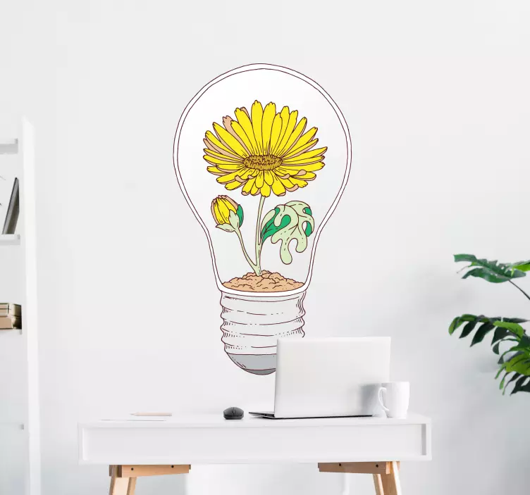 动物贴画盛开的灯泡是一款充满生机的艺术品,展现了自然界中灯泡、向日葵、树叶和花朵的美丽结合。这款设计以黄色的插图为主,象征着生长和生命力,仿佛把阳光和自然的气息带入您的家中。无论是用于儿童房间、客厅还是办公室,这款贴画都能为您的空间增添一抹亮丽的色彩和无限的创意灵感。