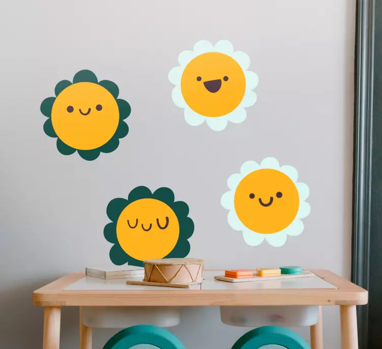 明亮而欢快的设计,展示了快乐的花朵角色。每朵花都有独特的表情,为任何空间带来一种顽皮和快乐的感觉。非常适合儿童环境,这些元素能够增强创造力和温暖的氛围。