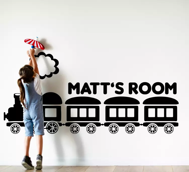 參考:: A48715一个充满奇幻火车主题的儿童空间设计,允许个性化名字的添加。这个迷人的设计包含了机车和车厢,为任何房间创造了一个充满趣味和想象力的氛围,非常适合小小梦想家。