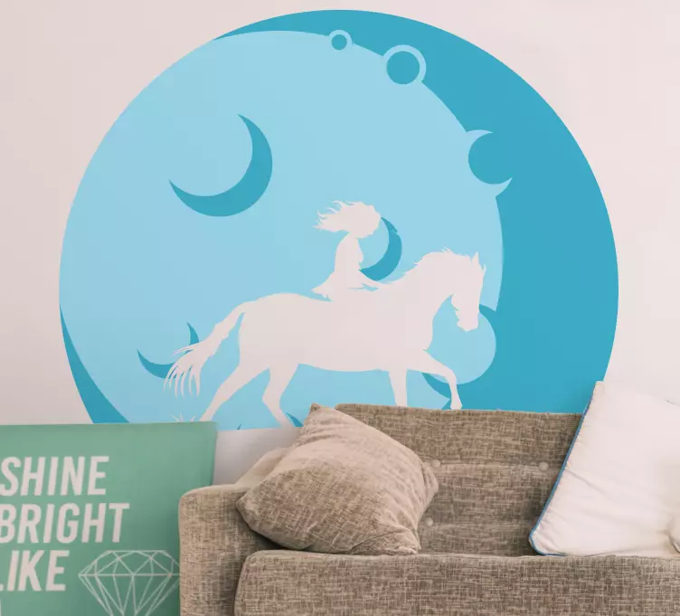 这款贴纸壁纸女孩骑马的设计完美融合了马的优雅、女孩的灵动以及月亮的神秘,整个画面在蓝色的背景下勾勒出宁静的自然场景。每个细节都充满了生机,让人产生无尽的遐想!