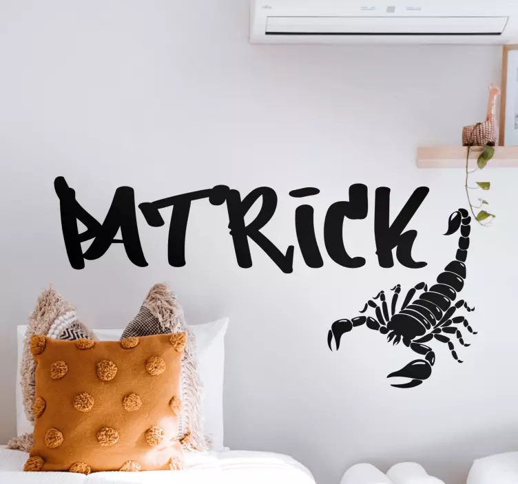 一个引人注目的可定制设计,展示了一个大胆的蝎子和一个引人注目的名字。这个设计融合了个性与象征意义,能够在任何空间中创造独特的声明。非常适合那些希望为周围环境增添个性化气息的人。