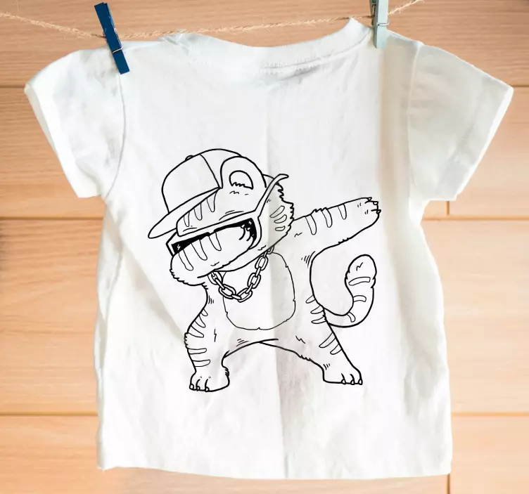 这个设计展示了一只可爱的猫咪,戴着太阳镜和帽子,散发出有趣和时尚的气息。卡通风格强调了趣味性,非常适合儿童。明亮而引人注目,这件作品以其独特的角色和年轻的吸引力脱颖而出。