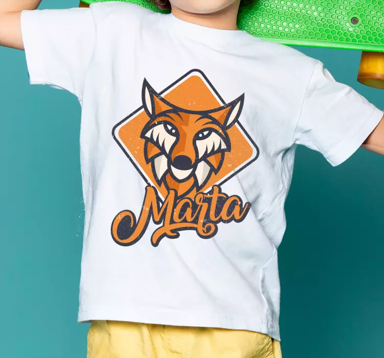 这个迷人的设计展示了一只引人注目的狐狸插图,色彩鲜艳且充满趣味,个性化地加入了名字'Marta'。非常适合儿童,结合了乐趣和创意,使每一件作品都独一无二,充满特别的意义。