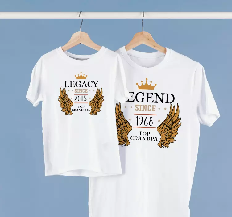 这是一件令人惊叹的t恤,它能够完美展示您家庭的自豪感。设计上带有一枚带翅膀的皇冠和相应的文字:legacy since... Top grandson,legend since... Top grandson。您可以根据自己的需求选择定制的日期。这件衬衫是爷爷和孙子的完美搭配,让他们看起来时尚而团结。