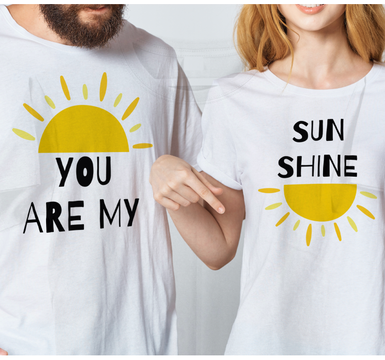 这个迷人的设计展示了一对情侣穿着相配的上衣,上面装饰着欢快的太阳图案和温暖、亲切的短语。阳光明媚的色彩唤起了快乐和连接的感觉,使其成为以愉快的方式表达爱的完美选择。