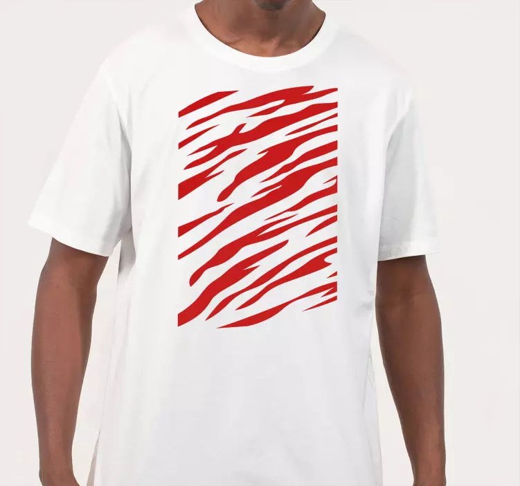 这款t恤衫大胆红色条纹将现代时尚与大胆设计完美结合。它采用了生动的老虎图案,搭配鲜艳的红色条纹,给人一种强烈的视觉冲击。动态的设计使得这款T恤不仅适合日常穿着,还能在各种场合中脱颖而出,成为你时尚造型的亮点。