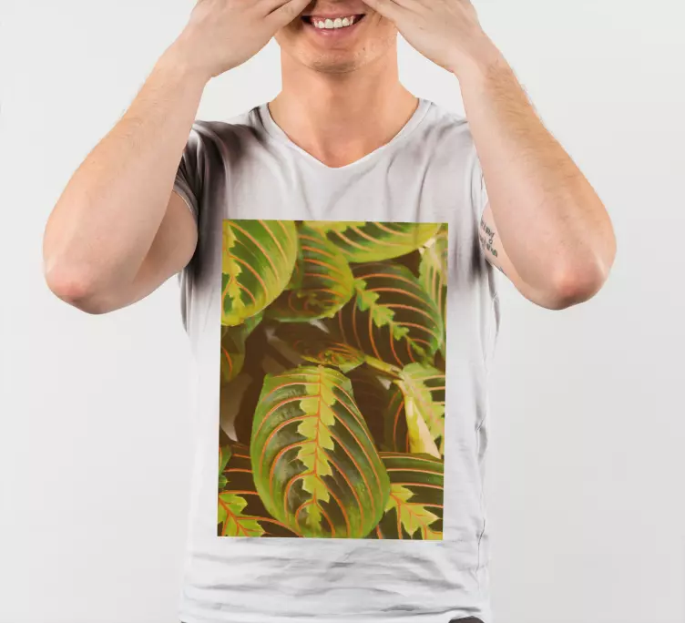 这款 T恤衫绿叶图案设计以其生动的热带植物插图而脱颖而出,设计灵感源自自然界的奇妙生机。极具异国情调的马兰塔树叶图案,呈现出丰富的绿色质感,仿佛带你走进一片充满活力的丛林。每一件T恤都散发出新鲜的气息,为你的衣橱增添了一份自然的魅力。
