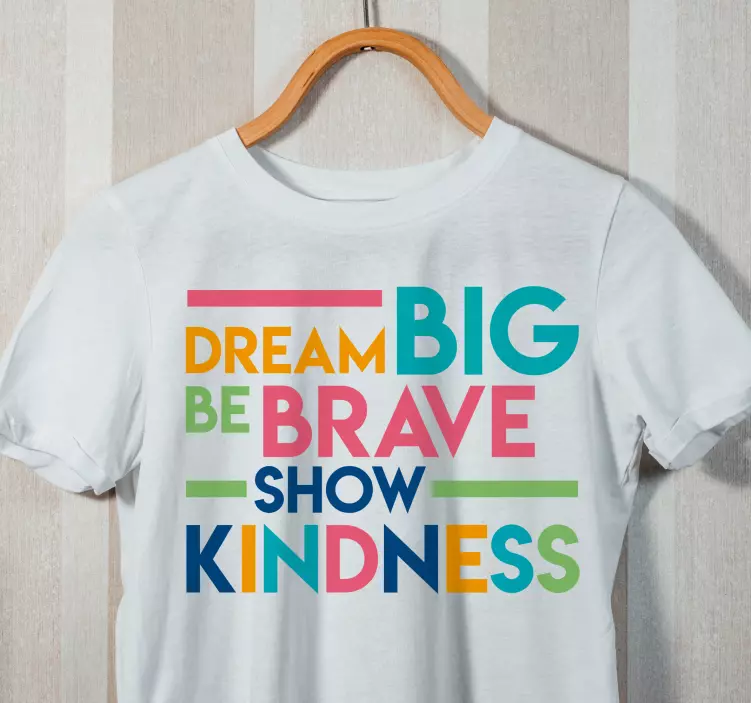 这款以善良激励他人的T恤衫,设计灵感源自于追逐梦想和勇敢展现自我的精神。它不仅是一件普通的T恤,而是一个充满积极向上力量的象征。丰富多彩的图案和励志的文本,让每一个穿上它的人都能感受到青春的活力与振奋的心情!