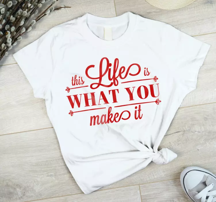 这个设计展示了一句强有力的励志名言,强调生活是你自己创造的主题。粗体字和鲜艳的颜色吸引眼球,使其成为休闲穿着的绝佳选择,激励积极的心态。