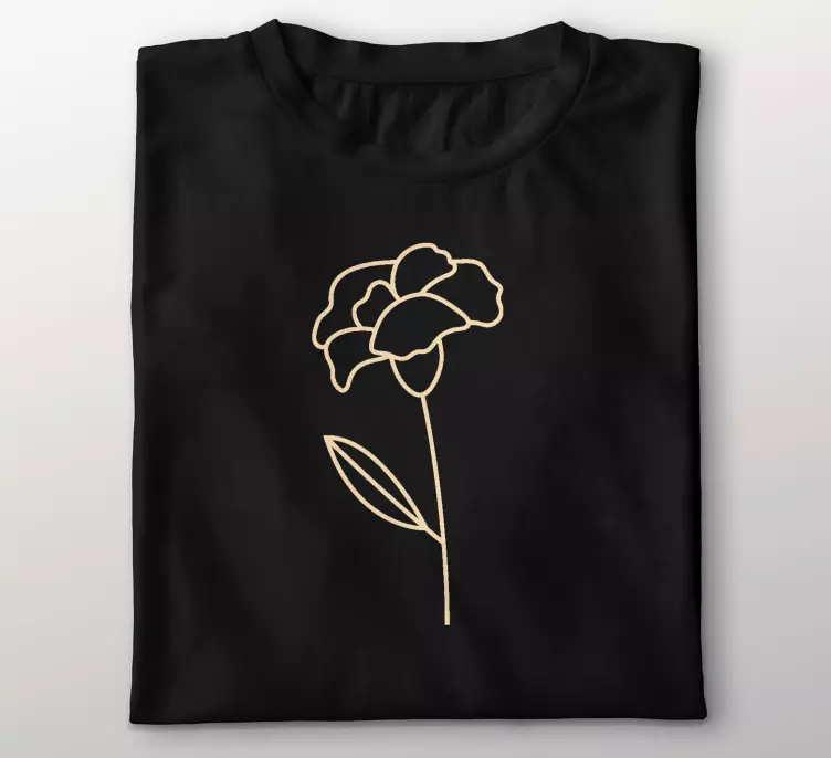 这款T恤衫 单朵花轮廓设计以其独特的极简主义线条艺术而脱颖而出。设计灵感源自一朵优雅的花朵,采用黑色和金色的鲜明对比,完美展现了现代审美。每一条线条都如同绘制的轮廓,让整个设计看起来既清新又富有艺术感,适合任何场合穿着!