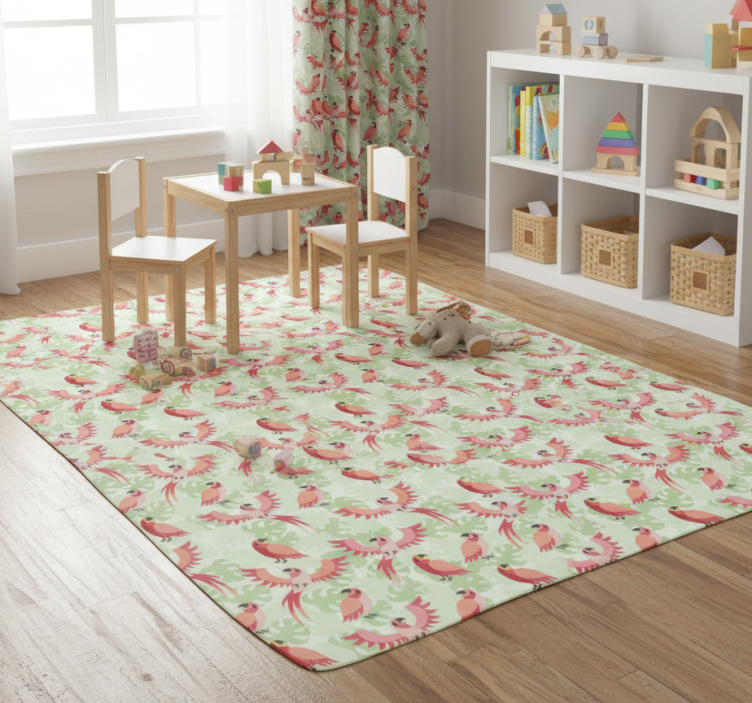 维护animal vinyl rug非常简单,您只需用湿布擦拭表面即可,乙烯基地毯动物红鸟栖息在绿叶上也能保持如新。定期清洁不仅能延长其使用寿命,还能保持家居的整洁。