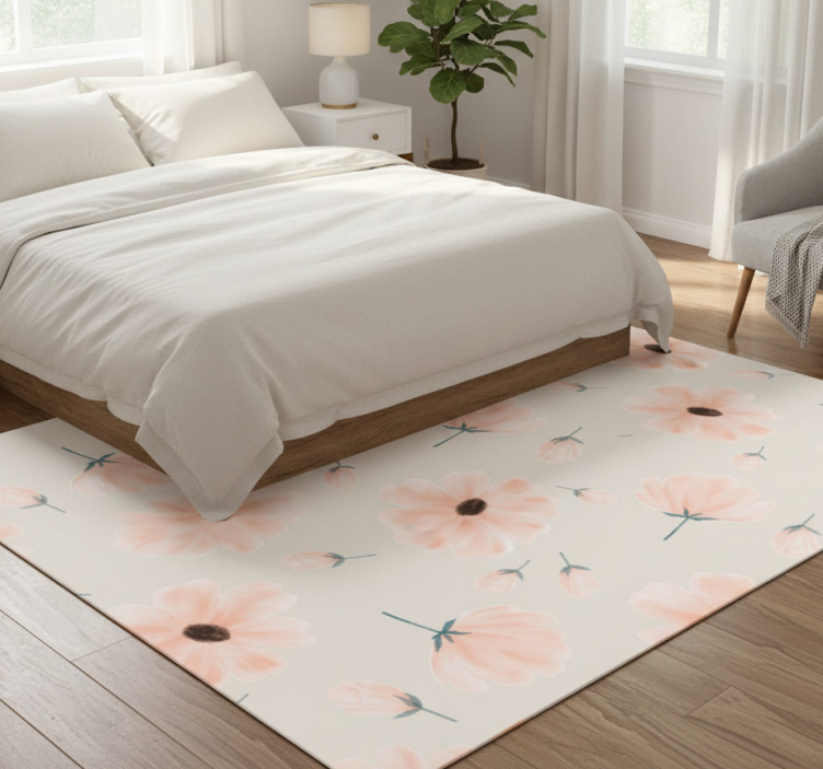 資訊 卧室乙烯基地毯大花水彩图案米色背景