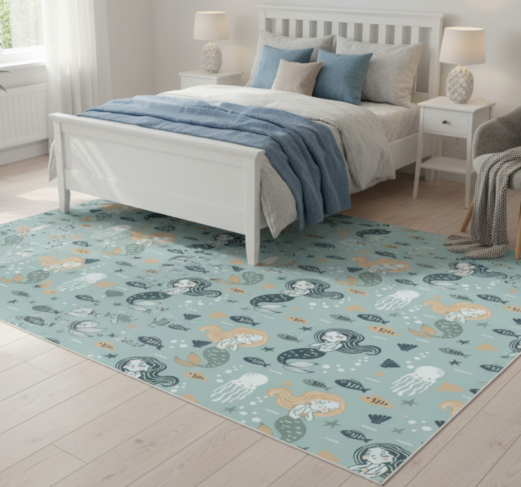 卧室乙烯基地毯蓝色魔法美人鱼图案