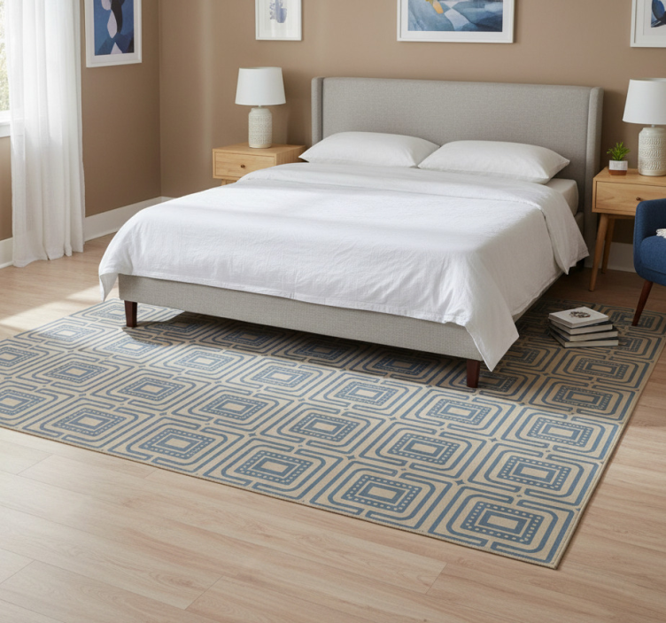 資訊 卧室乙烯基地毯呈现铜色与深蓝色方块纹理