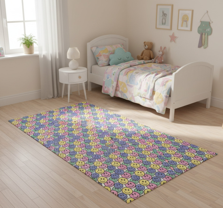 卧室乙烯基地毯展现彩色柔和笑脸