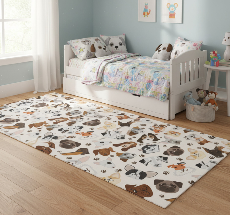 卧室乙烯基地毯可爱小狗与犬只图案不仅仅是一块地毯,它是您卧室的灵魂所在。它能够瞬间提升空间的温暖感和趣味性,为房间注入活力。无论是放在床边还是客厅,都能为家居环境增添一份独特的风格,给您的生活带来无尽的快乐与舒适感!