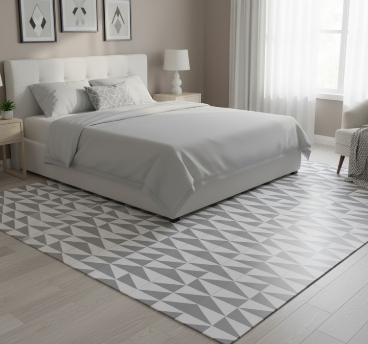 选择卧室乙烯基地毯,您将为您的居住空间增添无与伦比的装饰效果。卧室乙烯基地毯灰色三角形图案的现代设计,使其成为任何卧室的理想选择。它不仅提升了室内的美感,还为您的家居增添了一份温暖和舒适感。让这款地毯成为您卧室中的亮点,带来愉悦的居住体验!