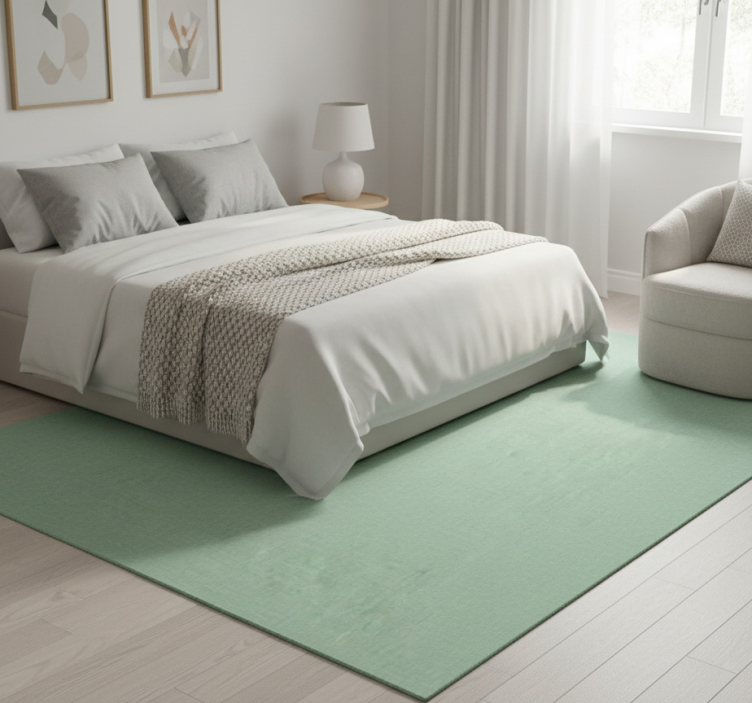 这幅图展示了一块柔和的薄荷绿矩形地毯,带有细腻的纹理设计。光滑的表面为整体美感增添了一种宁静的氛围。颜色令人放松,能够与各种装饰风格完美融合,使其成为任何空间的多功能补充。