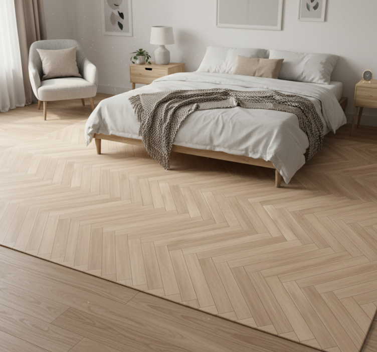 人字形图案采用温暖的浅色木材调色板。其角度排列在表面上营造出一种节奏感和动感。每块木材展现出微妙的色调和纹理变化,增强了自然的感觉。整体设计传达出现代而又永恒的美学。