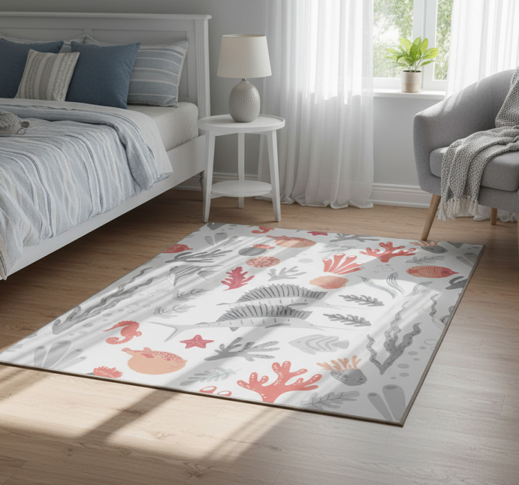 卧室乙烯基地毯海洋生物插图