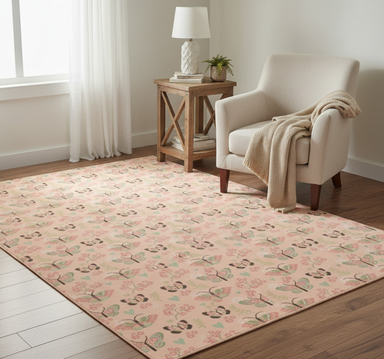 資訊 卧室乙烯基地毯中性色调与蝴蝶图案