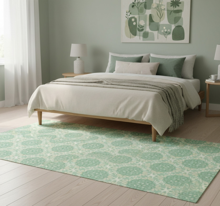 卧室乙烯基地毯北欧风格绿色花卉图案