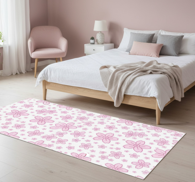 資訊 卧室乙烯基地毯带白色背景的小粉花