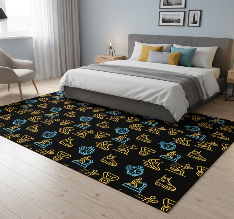 資訊 卧室乙烯基地毯,黑色背景上的霓虹色跑动矢量图标
