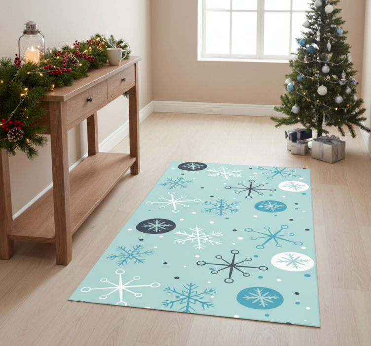欢迎来到这个充满节日气氛的世界,乙烯基地毯圣诞装饰蓝白雪花将为您的家居增添无限魅力。它的设计灵感来自于冬季的雪花,蓝白色调相互交融,仿佛为您的空间铺上了一层柔软的雪毯。无论是放在客厅、餐厅,还是卧室,这款地毯都能瞬间提升室内的节日氛围,带来温暖与欢愉。