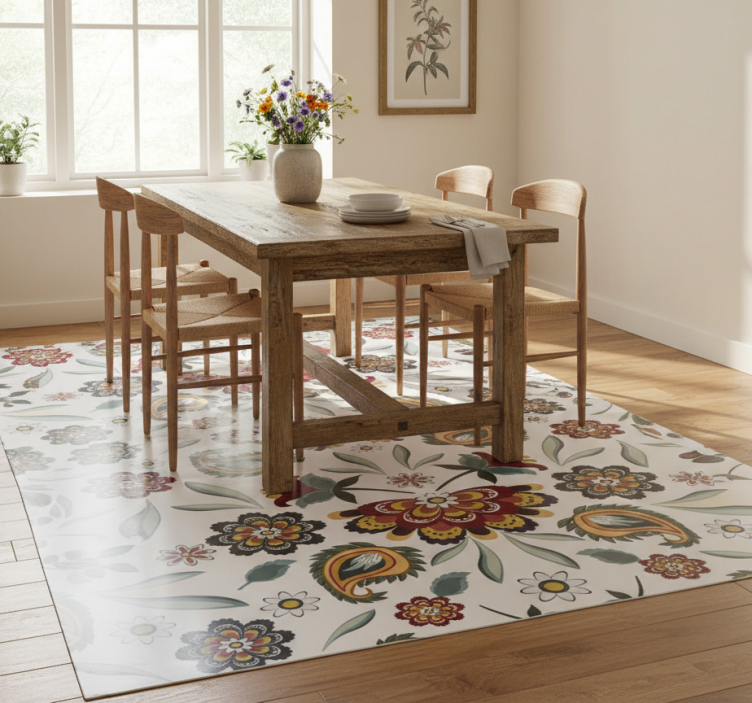 清洁乙烯基花草地毯非常简单!您只需用湿布轻轻擦拭,或使用温和的清洁剂即可恢复其光泽。无论是小污渍还是日常灰尘,乙烯基花草地毯民族花卉风格都能轻松应对,保持如新。