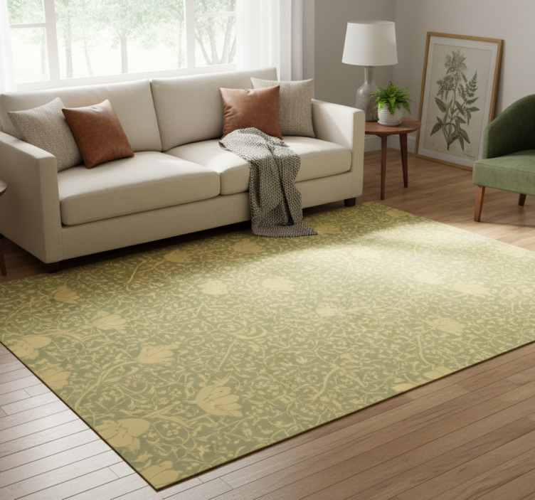 資訊 乙烯基花草地毯金绿柔和花卉图案