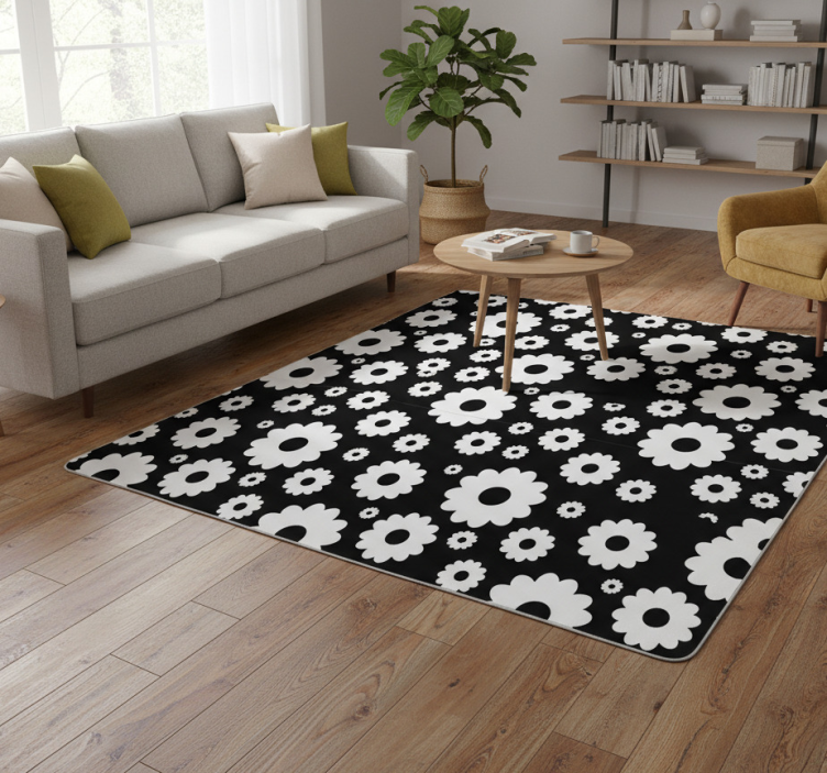 資訊 乙烯基花草地毯白色与黑色雏菊