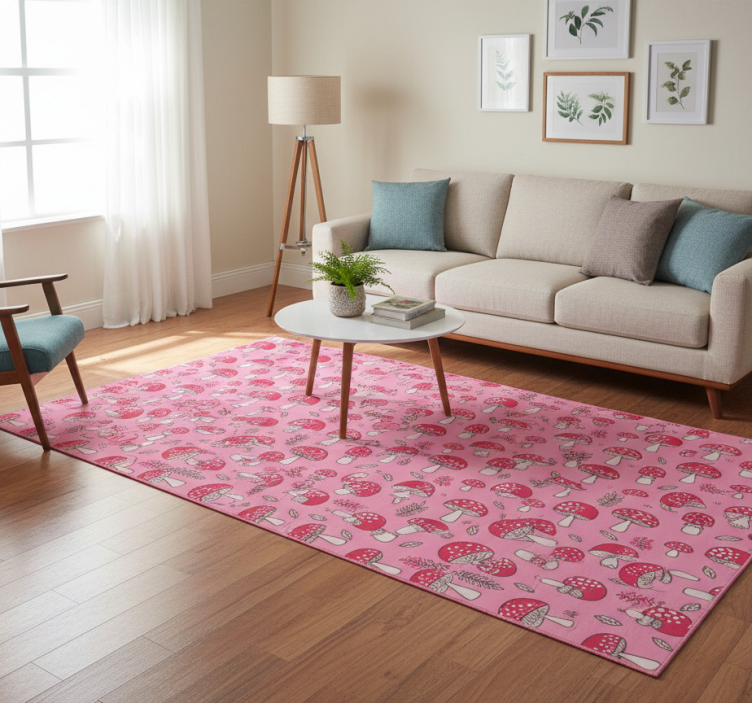 清洁乙烯基花草地毯非常简单,只需用湿布或拖把轻轻擦拭即可。让您的乙烯基花草地毯经典粉色蘑菇始终保持干净如新,轻松应对生活中的各种小污渍与灰尘。